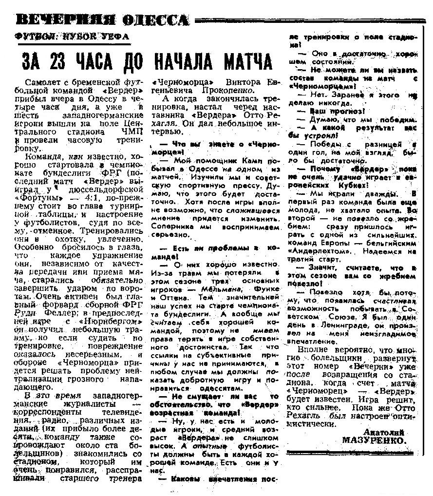"Вечерняя Одесса" 18 сентября 1985 г.