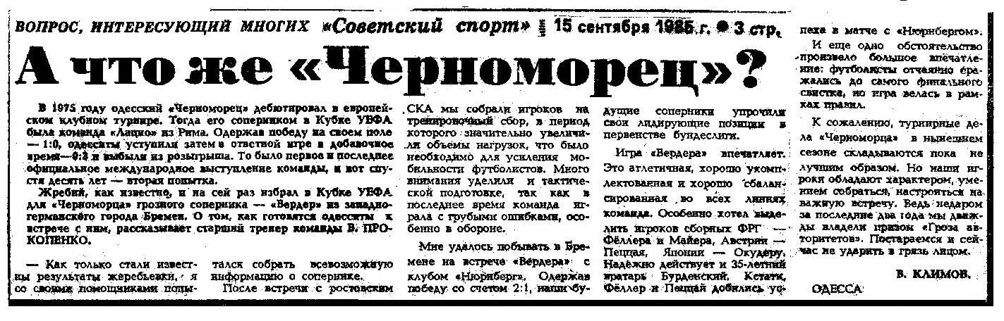"Советский спорт" 15 сентября 1985 г.