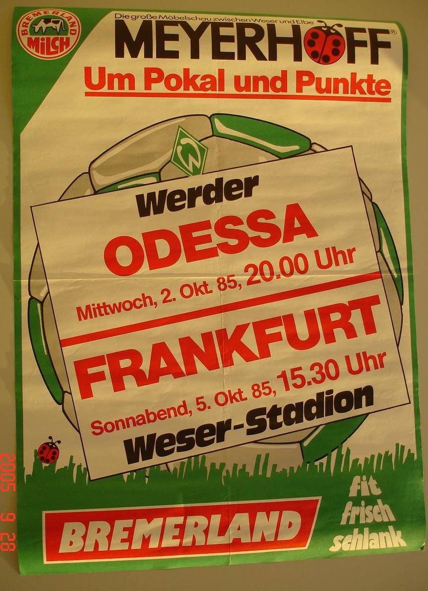 Афиша матча 1/32 Кубка УЕФА. 2 октября 1985 г. "Вердер" - "Черноморец"