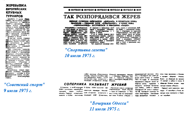 ЖЕРЕБЬЕВКА ЕВРОПЕЙСКИХ КЛУБНЫХ ТУРНИРОВ СЕЗОНА 1975/76